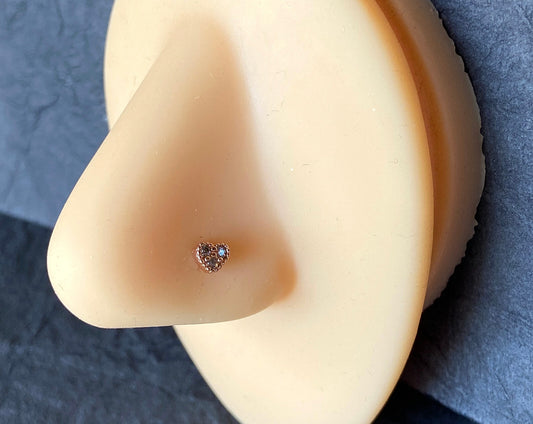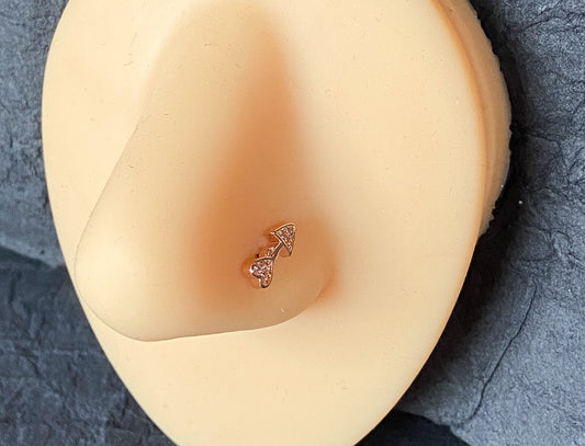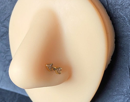 1pc CZ Paved Heart Arrow 20g Nose Ring Stud 316L Surgical Steel
