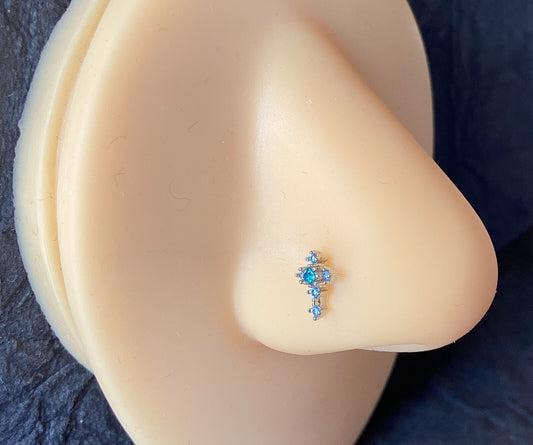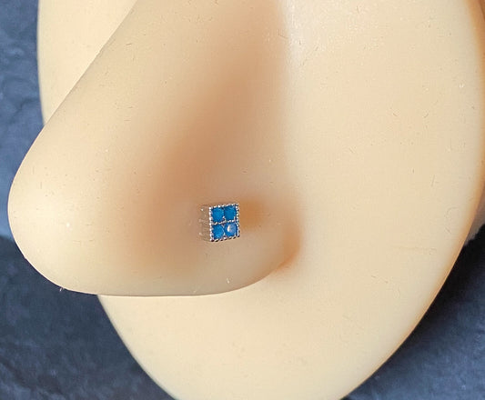 Blue Turquoise Crystals Square Top 20g Surgical Steel Nose Stud Bone Ring