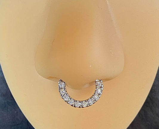 1pc Single Line Ten Paved Gem Septum Clicker 316L Surgical Steel Nose Ring