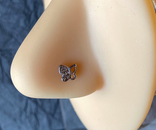 1pc CZ Paved Butterfly 20g Nose Ring Stud Bone 316L Surgical Steel