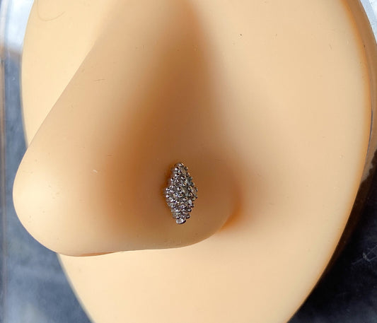 1pc CZ Paved Rhombus-Shaped 20g Nose Ring Stud Bone 316L Surgical Steel