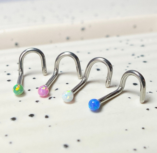 1pc Opal Ball Surgical Steel Nose Screw Ring 18g or 20g - choose color