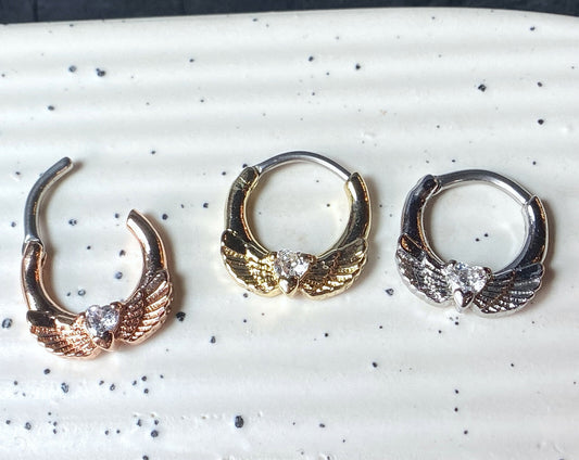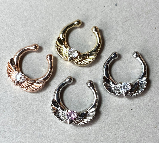 1pc Angel Wings w/Heart CZ Gem Septum Clicker Nose Ring Body Jewelry