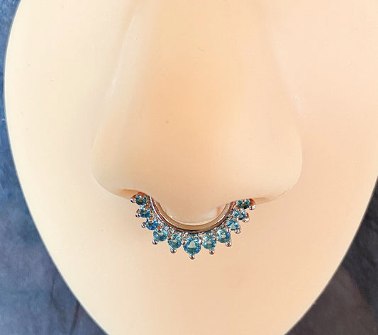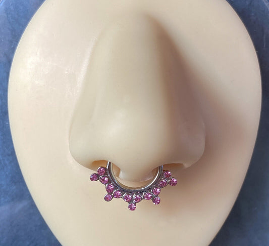 1pc Floral Round w/Gems Septum Clicker 316L Surgical Steel 14g or 16g Nose Ring