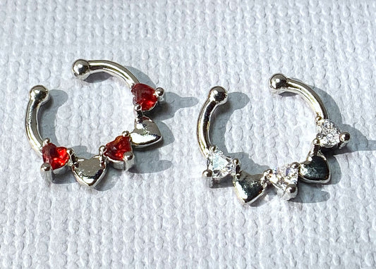 1pc Non-Piercing Half Circle Septum Hanger Heart CZ Gems Clip-On Fake Nose Ring