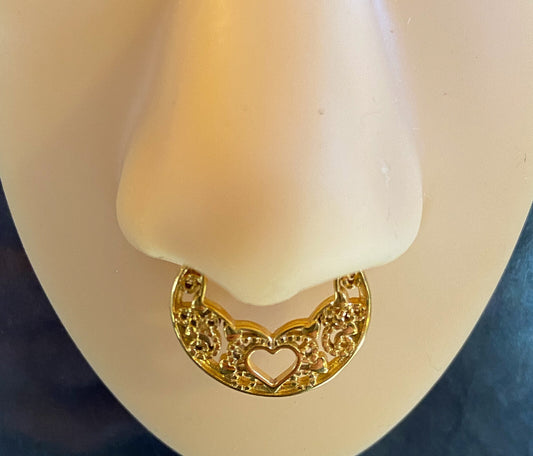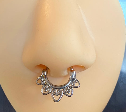 1pc 100% SURGICAL STEEL Heart Laced Septum Ring Clicker Pierced Nose 16g