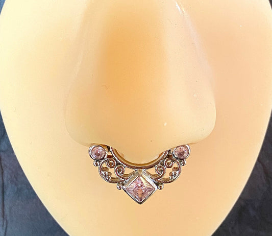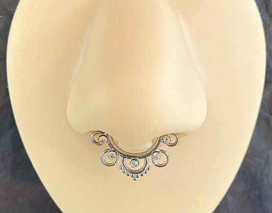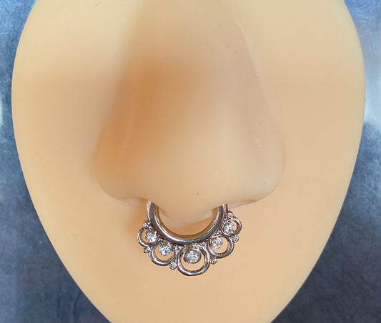 1pc Lacey Edge Design Septum Clicker 316L Surgical Steel 14g or 16g Nose Ring