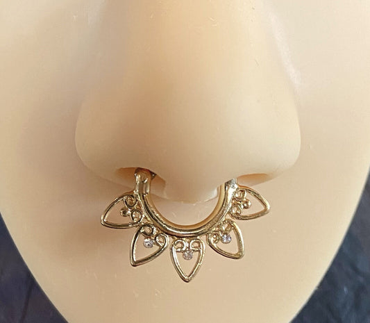 1pc 100% SURGICAL STEEL Lace Tribal Fan Septum Ring Clicker Pierced Nose 16g