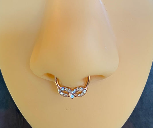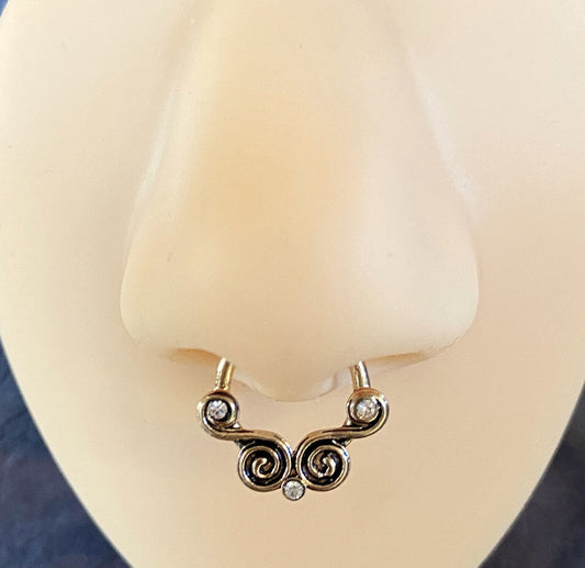 1pc Non-Piercing Lace Swirl w/Gems Septum Hanger Clip-On Fake Nose Ring