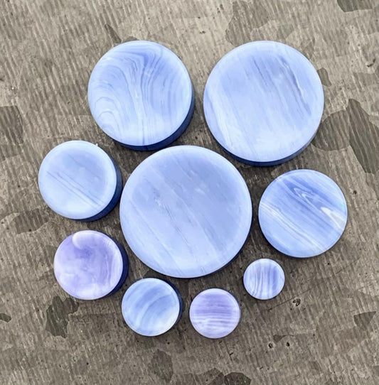 PAIR of Brilliant Concave Blue Lace Agate Double Flare Organic Stone Plugs - Gauges 2g (6mm) thru 1" (25mm)