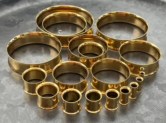 PAIR Gold Plated Double Flare Tunnels Ear Plugs Earlets Gauges