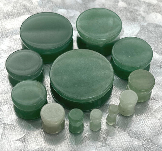 PAIR Green Aventurine Plugs Semi-Precious Organic Stone Earlets Gauges - Only 7/8" Available