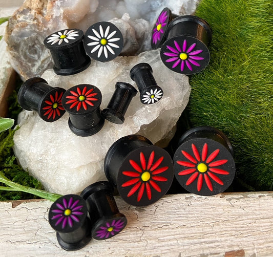 ALL 4 PAIR Silicone Plugs w/ Raised Flower Earlets Gauges Tunnels Body Jewelry