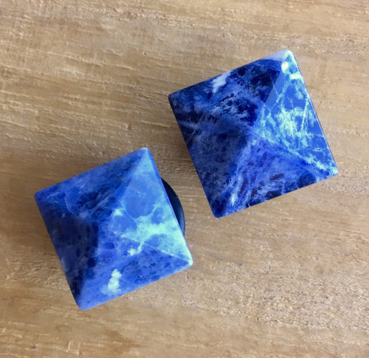 PAIR of Beautiful Organic Sodalite Stone Pyramid Single Flare Plugs with O-Rings - Gauges 4g (5mm) up to 5/8" (16mm)