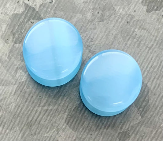 PAIR of Stunning Light Blue Cat Eye Stone Plugs/Tunnels - Gauges "2g (6mm) up to 5/8" (16mm)