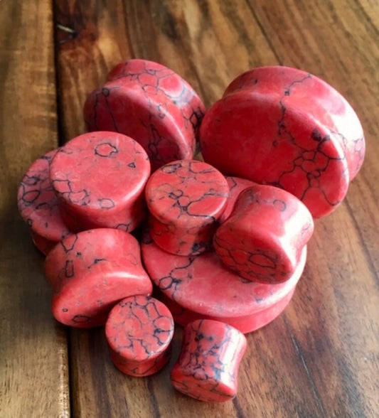 PAIR of Stunning Red Turquoise Stone Plugs Gauges Tunnels - Gauges 8g (3mm) thru 1" (25mm)