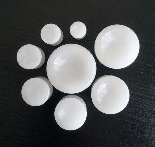 PAIR of Unique Concave White Jade Stone Plugs - Gauges 0g (8mm) up to 1" (25mm)