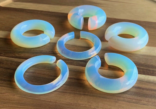 PAIR of Unique Opalite Stone Hoops Ear Weight Hanging Glass Plugs - Gauges 4g (5mm) up to 5/8" (16mm)