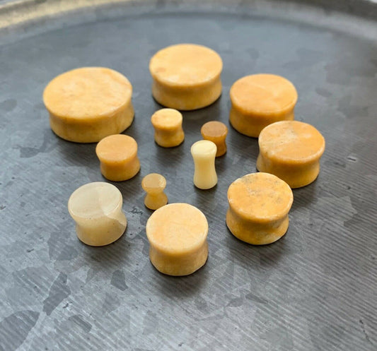 PAIR of Unique Yellow Burmese Organic Stone Plugs Tunnels Gauges Body Jewelry
