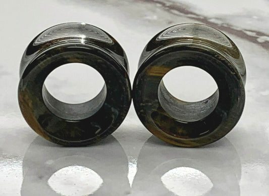 PAIR of Beautiful Blue Tiger Eye Organic Stone Tunnels - Gauges 2g (6mm) up to 3/4" (19mm)