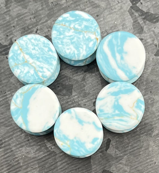 PAIR of Stunning Sky Turquoise Stone Double Flare Plugs - Gauges 2g (6mm) thru 5/8" (16mm)