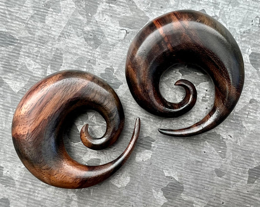 PAIR of Beautiful Brown Sono Wood Spiral Tapers - Gauges 4g (5mm) up to 5/8" (16mm)