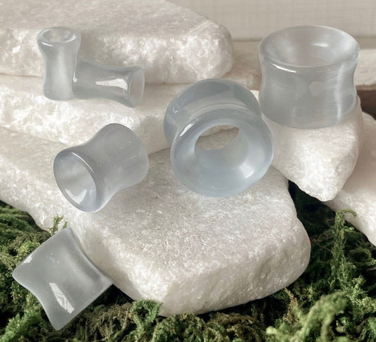 PAIR of Stunning Light Grey Cat Eye Double Flare Stone Tunnels /Plugs - Gauges 2g (6mm) up to 5/8" (16mm)