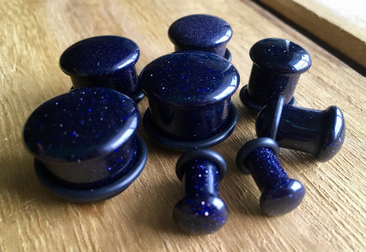PAIR of Stunning Midnight Blue Sandstone Single Flare Stone Plugs with O-Rings - Gauges 4g (5mm) up to 5/8" (16mm)