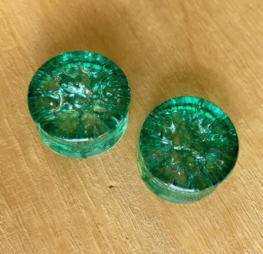 PAIR of Beautiful Green Cracked Glass Double Flare Plugs - Gauges 2g (6mm) through 5/8" (16mm)