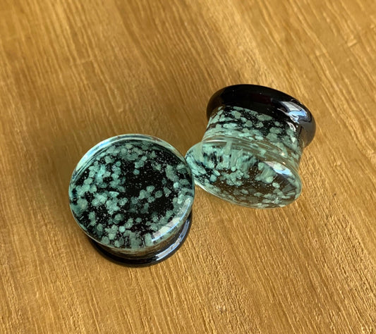 PAIR of Stunning Glow in the Dark Sparkle Pyrex Glass Double Flare Plugs - Gauges 2g (6mm) through 5/8" (16mm)