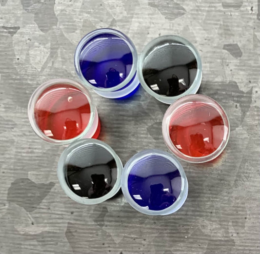 PAIR of Unique Single Flare Glass Plugs/Tunnels with O-Rings - Black, Blue or Red & Gauges 2g (6mm) through 1/2" (12mm)