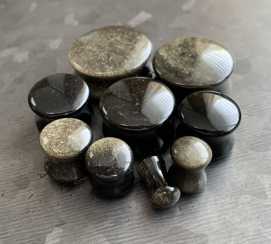 PAIR of Stunning Golden Obsidian Organic Double Flare Stone Plugs - Gauges 2g (8mm) up thru 1" (25mm)