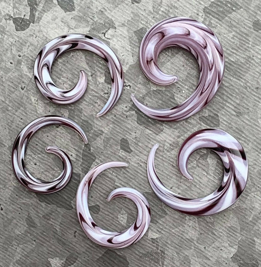 PAIR of Stunning Purple & White Swirl Glass Spiral Tapers - Gauges 6g (4mm) thru 00" (10mm)