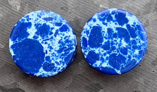 Pair of Brilliant Imperial Blue Jasper Stone Double Flare Plugs - Gauges 6g (4mm) through 1"(25mm)