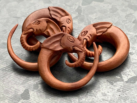 PAIR of Stunning Hand Carved Organic Sawo Wood Elephant Tapers/Plugs - Expanders - Gauges 2g (6mm) thru 00g (10mm)