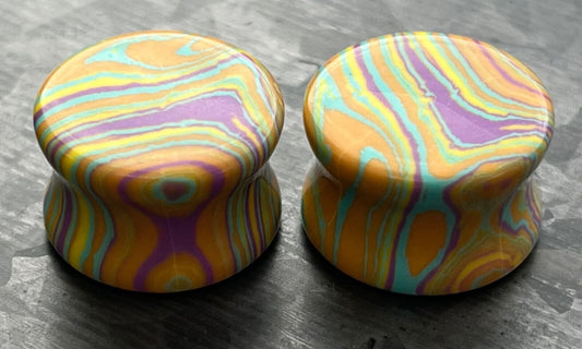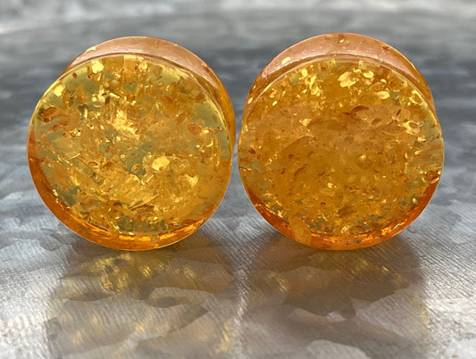 PAIR of Beautiful Acrylic Amber Saddle Double Flare Plug - Gauges 6g (4mm) through 1" (25mm)