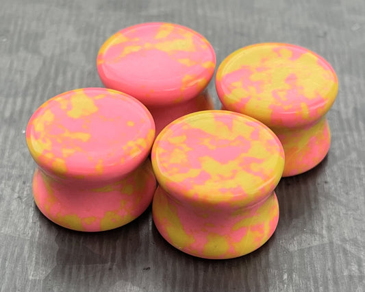 PAIR of Stunning Pink Lemonade Synthetic Turquoise Stone Double Flare Plugs - Gauges 2g (6mm) thru 5/8" (16mm)