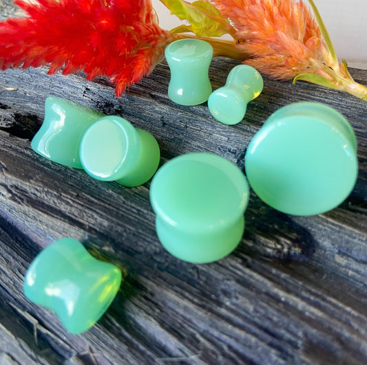 PAIR of Stunning Green Opalite Double Flare Saddle Plugs/Tunnels - Gauges 2g (6mm) thru 5/8" (16mm)