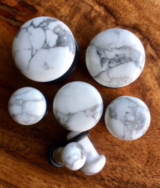 PAIR of Single Flare Natural Howlite Stone Plugs with O-Rings - Gauges 4g thru 5/8" (16mm) Body Jewelry
