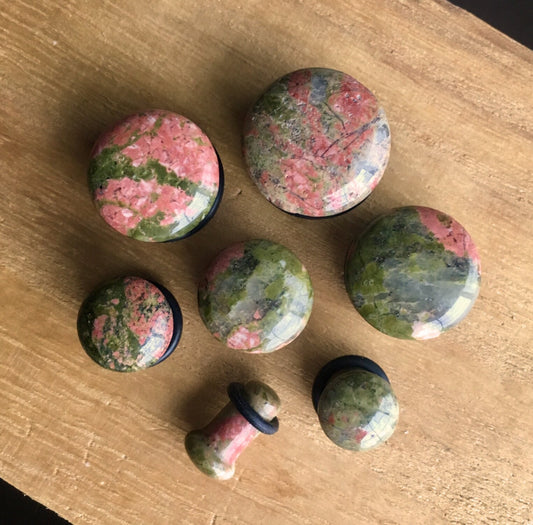 PAIR of Single Flare Unakite Stone Plugs with O-Rings - Gauges 4g (5mm) up to 5/8" (16mm)