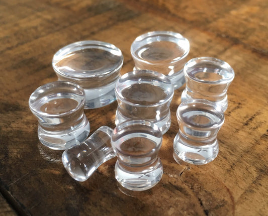 PAIR of Beautiful Clear Glass Double Flare Plugs - Gauges 2g (6mm) through 5/8" (16mm)
