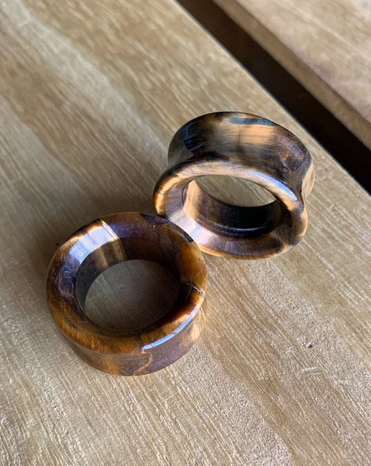 PAIR of Organic Tiger Eye Stone Double Flare Tunnels - Gauges 2g up to 1" (25mm)