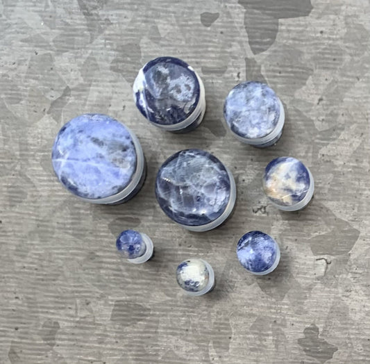 PAIR of Beautiful Organic Sodalite Single Flare Plugs with O-Rings - Gauges 6g (4mm) up to 5/8" (16mm)