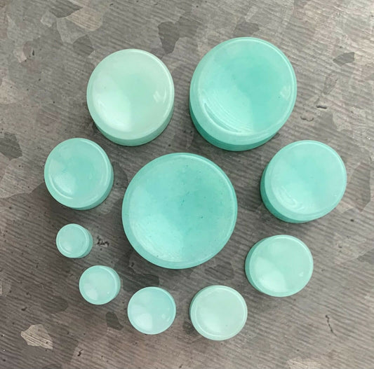 PAIR of Stunning Concave Amazonite Organic Stone Double Flare Plugs - Gauges 2g (6mm) up to 1" (25mm)