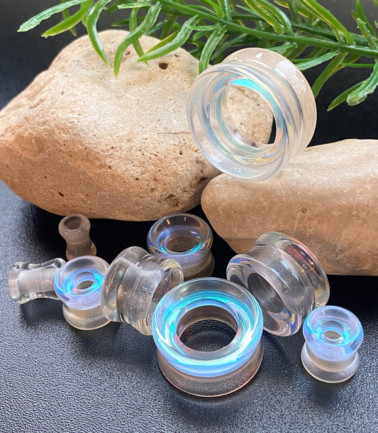 PAIR of Unique Aurora Borealis Iridescent Glass Double Flare Tunnels/Plugs - Gauges 2g (6mm) to 1" (25mm)