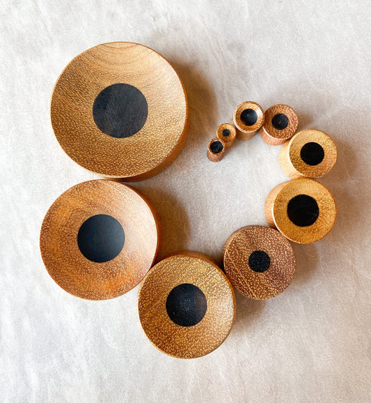 PAIR of Unique Concave Jackfruit Wood with an Areng Wood Center Plugs - Gauges 1" (25mm) thru 52mm (a little over 2")