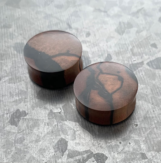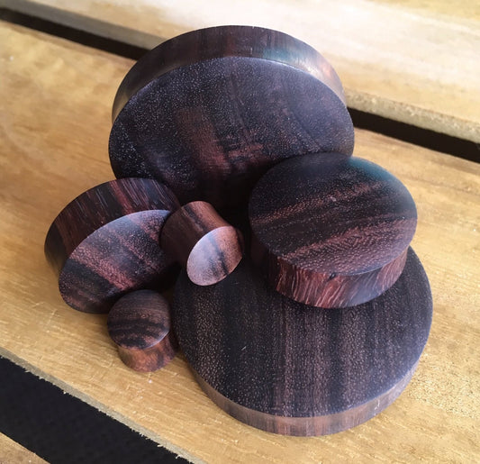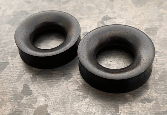 PAIR of Beautiful Organic Ebony Wood Convex Saddle Double Flare Plugs/Tunnels - Gauges 8g (3.2mm) up to 1" (25mm)