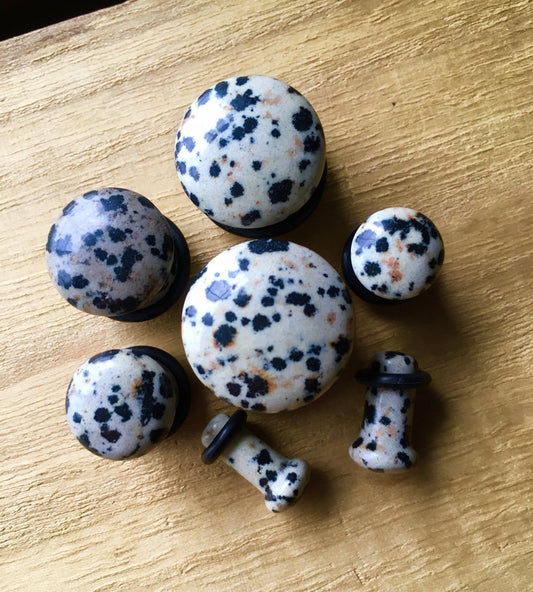 PAIR of Organic Single Flare Dalmatian Jasper Stone Plugs with O-Rings Gauges Tunnels Body Jewelry