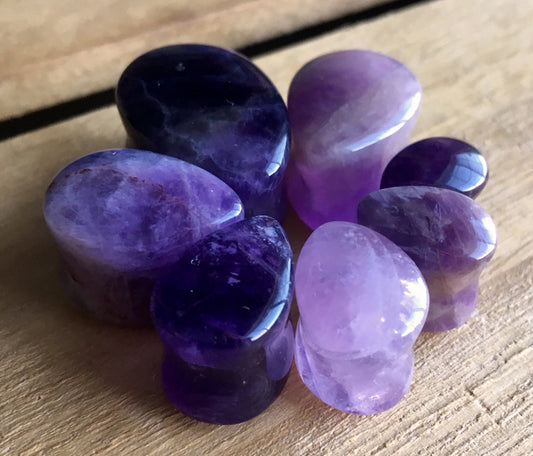 PAIR of Stunning Teardrop Organic Amethyst Stone Plugs