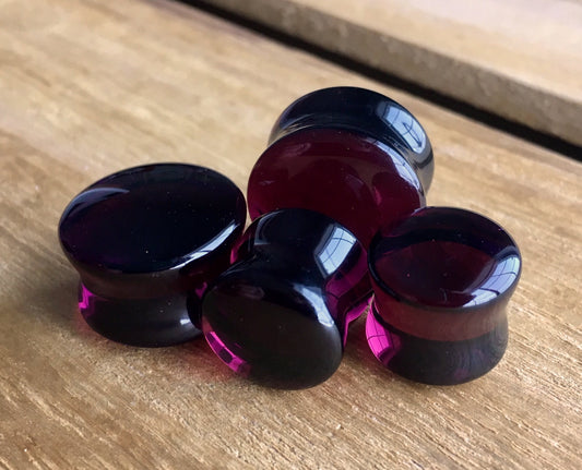 PAIR of Stunning Burgundy Glass Double Flare Plugs - Gauges 2g (6mm) through 5/8" (16mm)